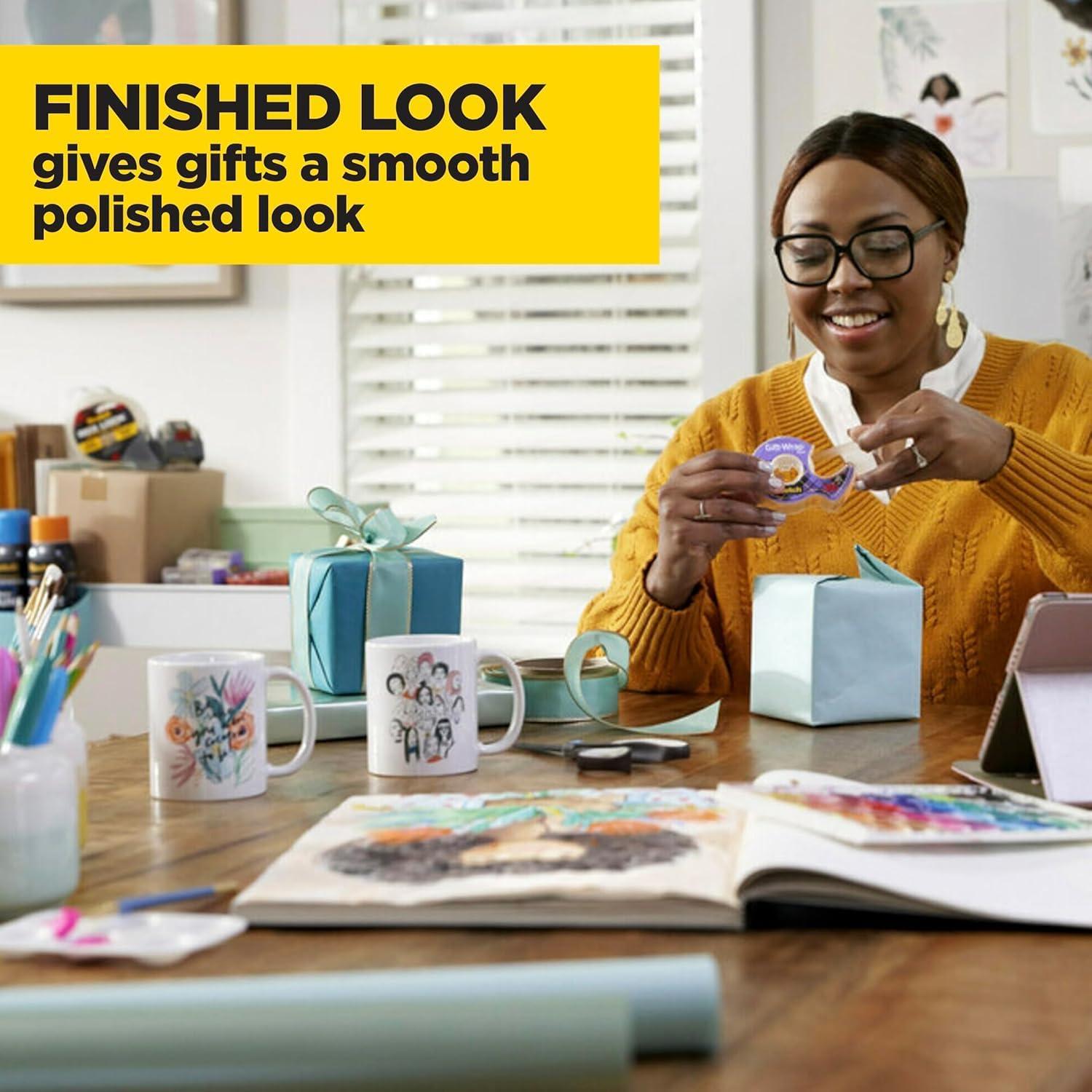 SATIN FINISH TAPE: The clear wrapping tape has a satin finish that gives gifts a smooth, finished look, making it the go-to holiday tape