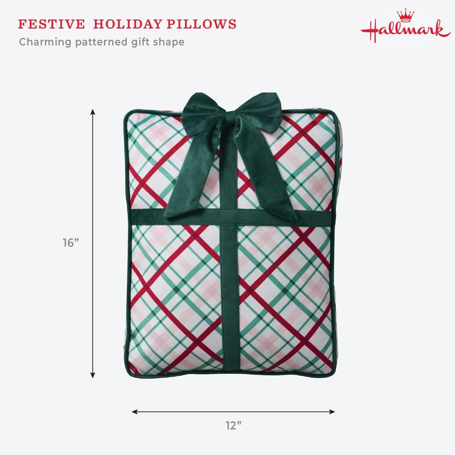 Hallmark – Decorative Throw Pillow for Couch or Bed, Holiday Home Décor, 8″ x 16″, (Sherpa Stocking, Red)(Gift Plaid)