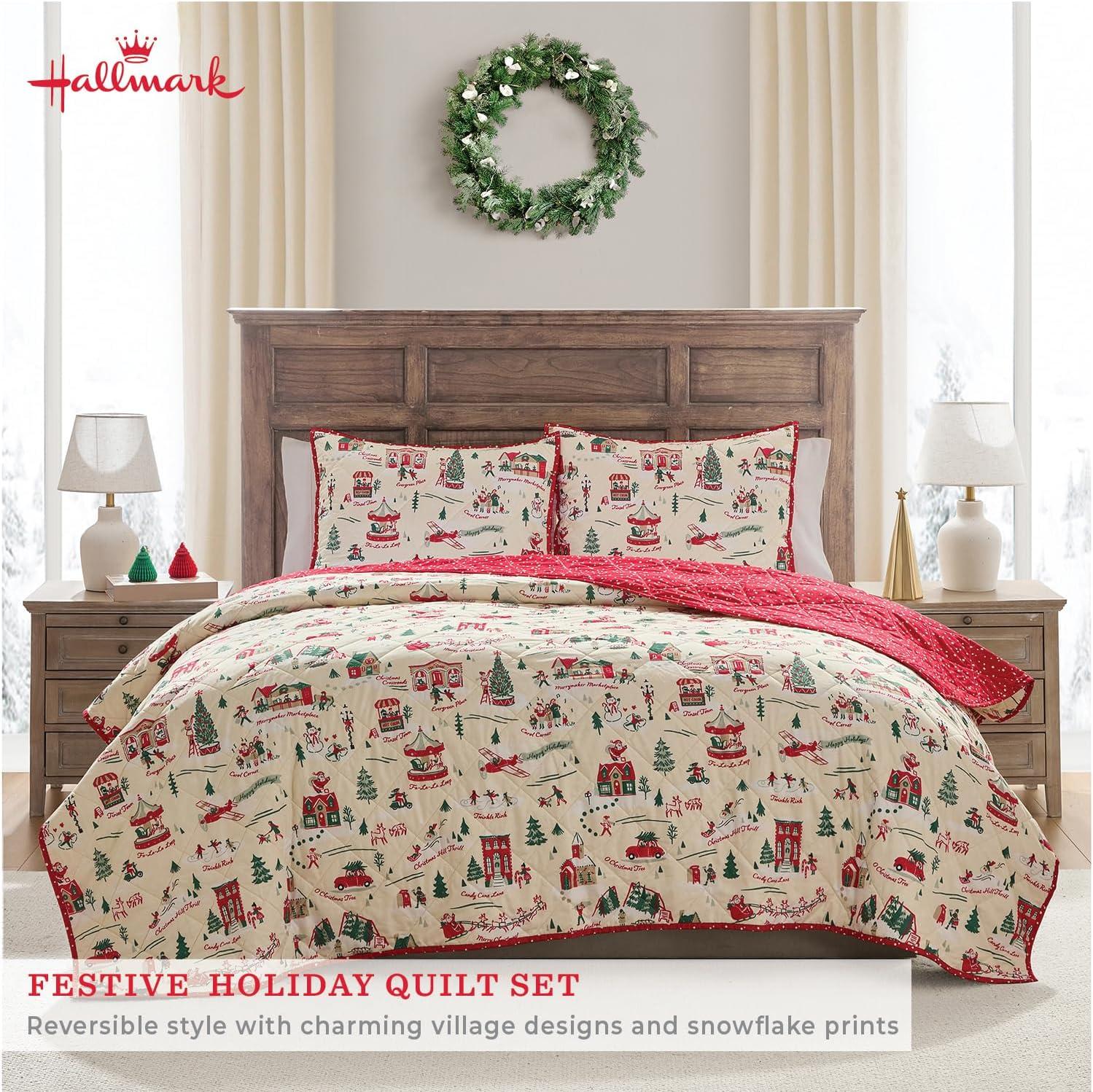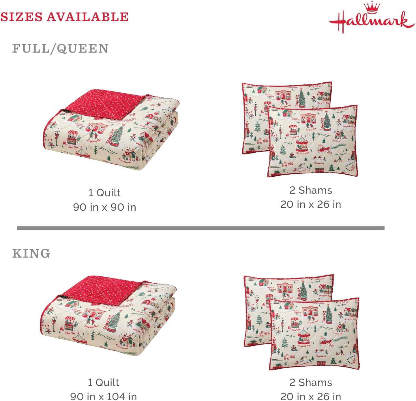 Hallmark – Full/Queen Quilt, 3-Piece Holiday Quilt Set with Shams, Reversible Quilt (Multi Candy Canes, Full/Queen)(Christmas Village)