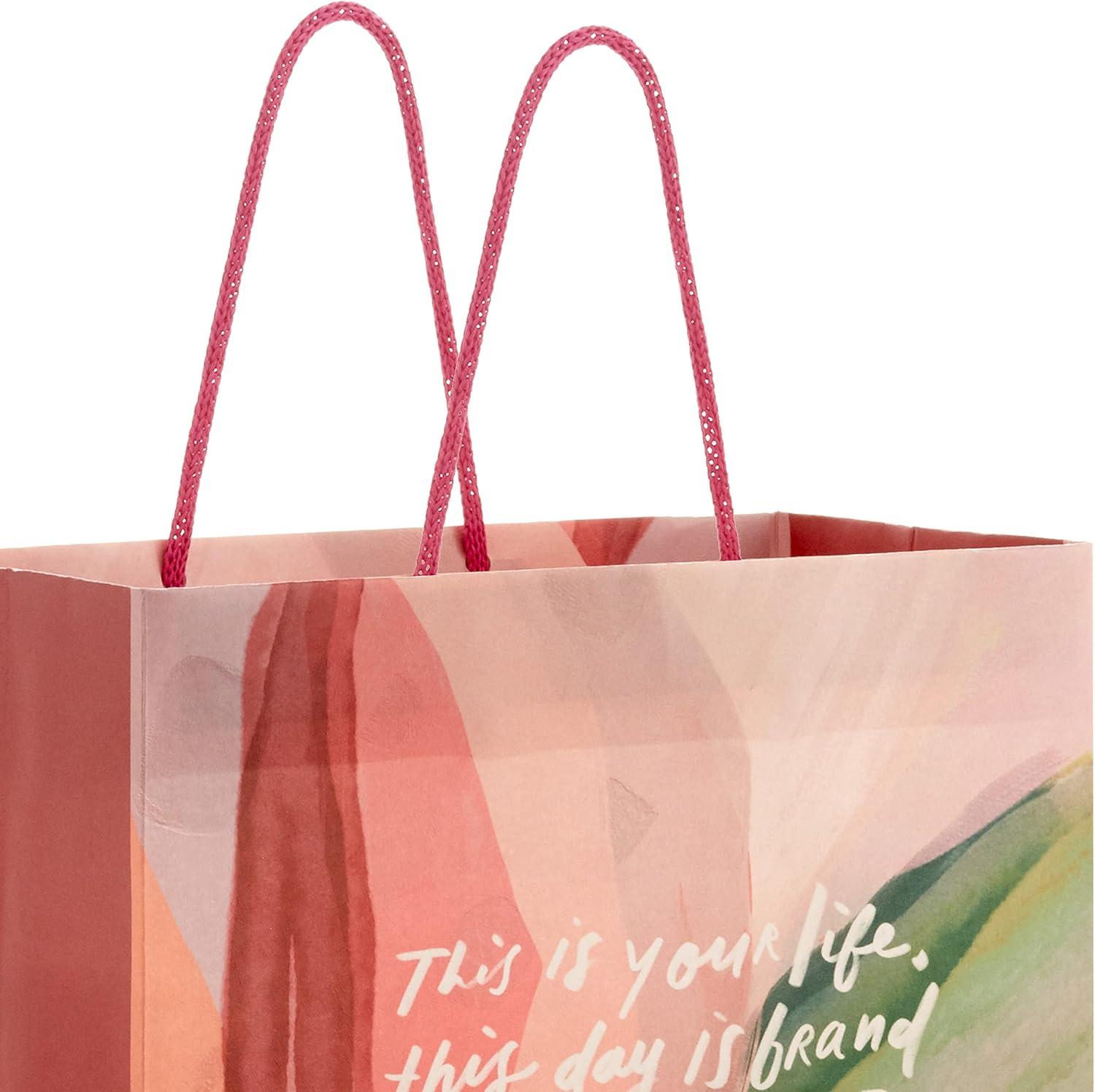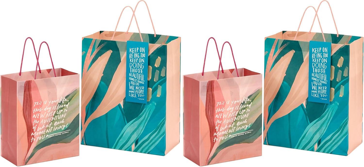 Made in partnership with artist and writer Morgan Harper Nichols, this set of special gift bags help you celebrate life's special occasions in a unique way. Two artistic gift bags, one 9″ medium and one 13″ large, feature inspirational and encouraging messages, perfect for birthdays, graduations, Mother's Day, job promotions, first days of school or everyday celebrations. With beautiful artistic brushstrokes and abstract foliage in pink, peach, teal and green, these gift bags are perfect for moms, daughters, sisters, aunts, teachers, neighbors, coworkers and more. The Hallmark brand is widely recognized as the very best for greeting cards, gift wrap, and more. For more than 100 years, Hallmark has been helping its customers make everyday moments more beautiful and celebrations more joyful.