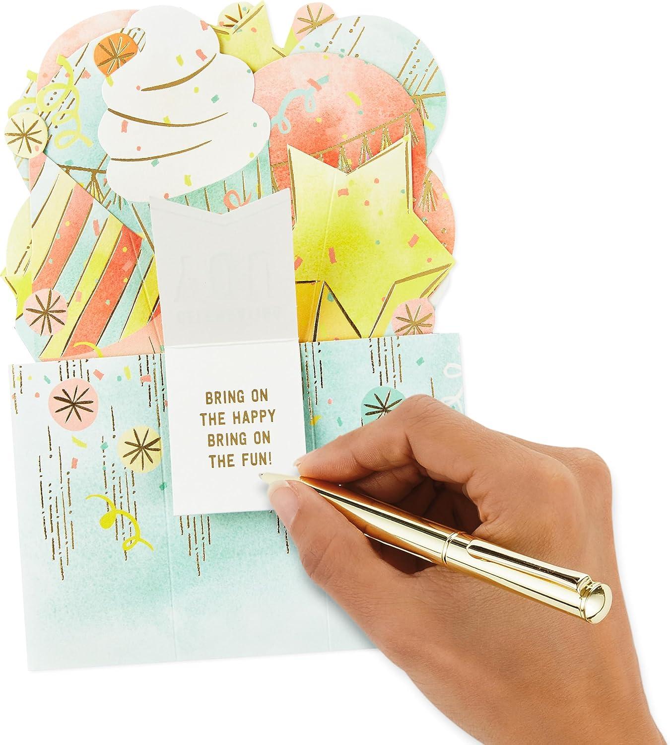 Wish family and friends a very happy birthday and great year ahead with an exciting pop up card featuring festive foil accents and a cheerful sentiment. With an impressive design and intricately detailed papercraft, the birthday girl will want to display this card long after their birthday has passed. Keep several of these pop up cards on hand so you'll be prepared to celebrate your favorite people throughout the year. The Hallmark brand is widely recognized as the very best for greeting cards, gift wrap, and more. For more than 100 years, Hallmark has been helping its customers make everyday moments more beautiful and celebrations more joyful.