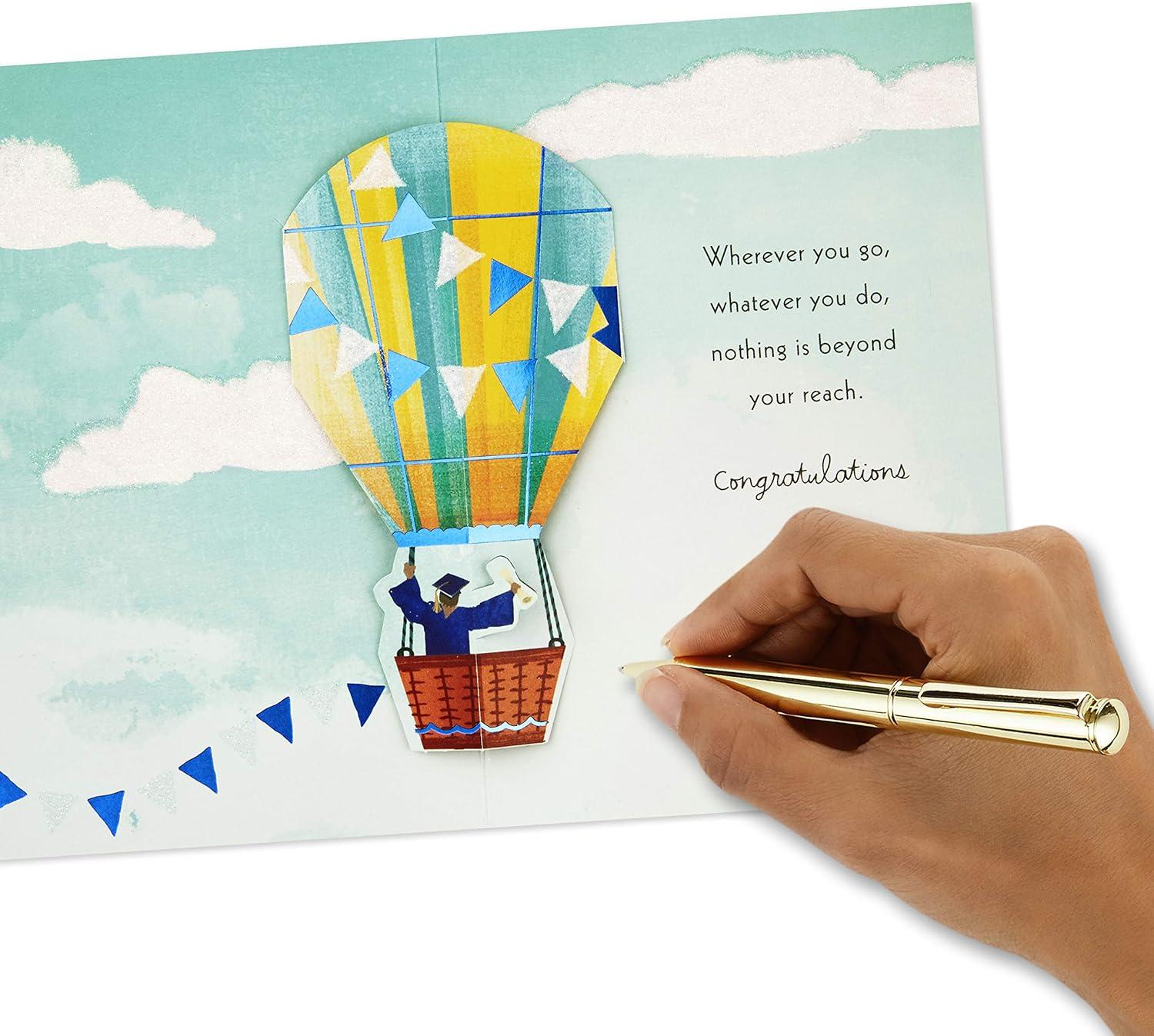 Let your friends and family know you're sharing in their excitement with an impressive pop up graduation card. With a beautifully embellished design and thoughtful message inside, it's a festive accompaniment to a graduation gift or a perfect money or gift card holder. There's nothing like a handwritten note to commemorate starting an exciting new chapter in life, and this card is a great way to express your excitement or pride. The Hallmark brand is widely recognized as the very best for greeting cards, gift wrap, and more. For more than 100 years, Hallmark has been helping its customers make everyday moments more beautiful and celebrations more joyful.