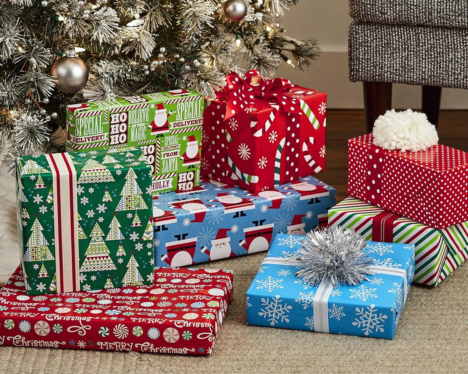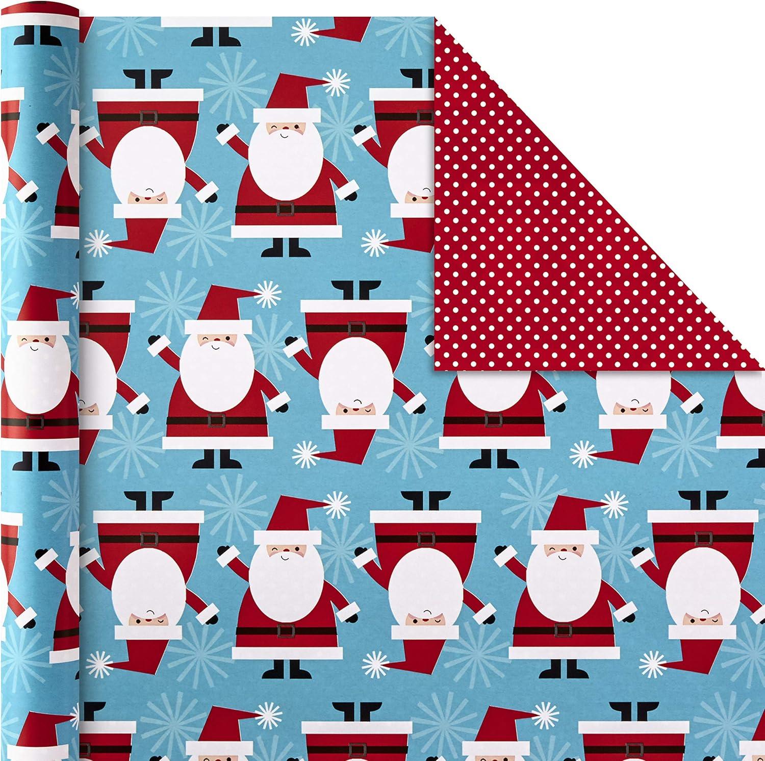 Hallmark Reversible Quad Pack Wrapping Paper (Santa & Trees, 4 Gift Wrap Rolls)(Santa and Trees)