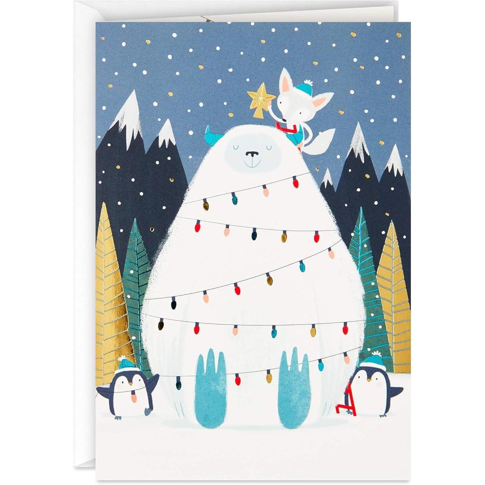 Send warm wishes to your holiday card recipients this year with these boxed Christmas cards featuring a fun foil-accented, abominable snowman design and wishes for a cheerful holiday. With 12 cards and 13 envelopes, this pack includes just the right amount for sharing holiday greetings with the friends and family closest to you. Buy several packs to send a Christmas wish to everyone on your list. A portion of the sales from this boxed set will be donated to UNICEF. The Hallmark brand is widely recognized as the very best for greeting cards, gift wrap, and more. For more than 100 years, Hallmark has been helping its customers make everyday moments more beautiful and celebrations more joyful.
