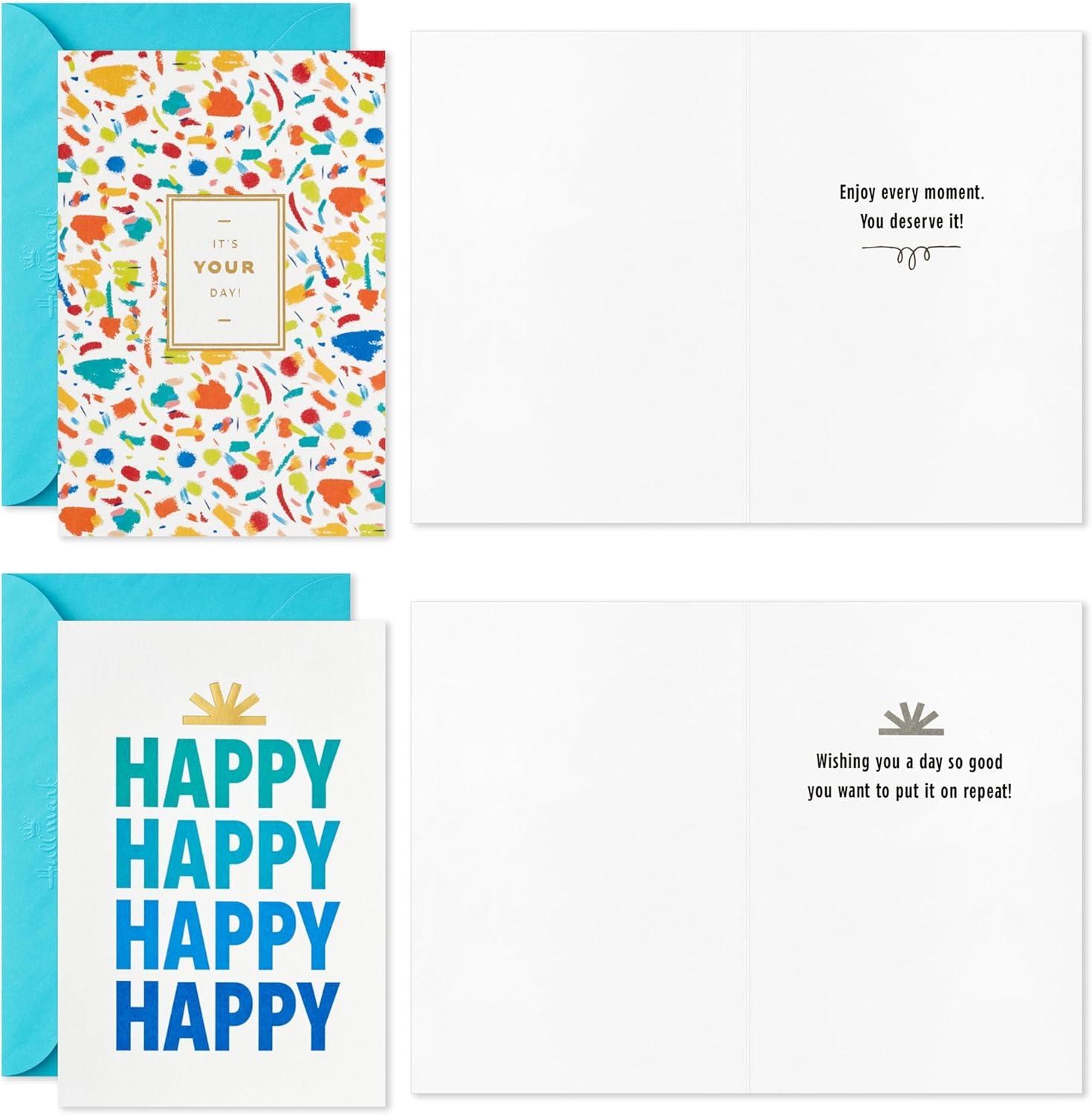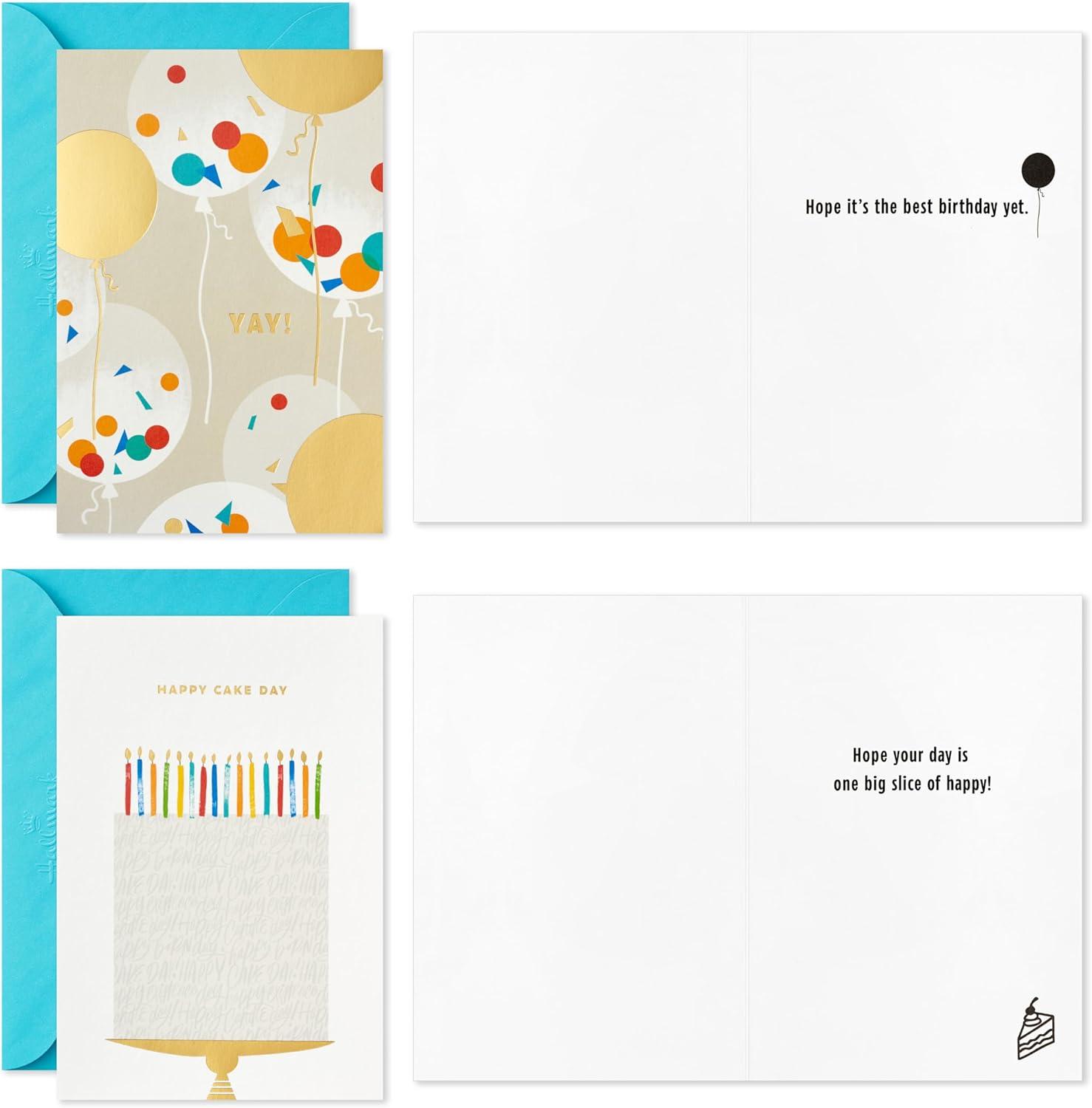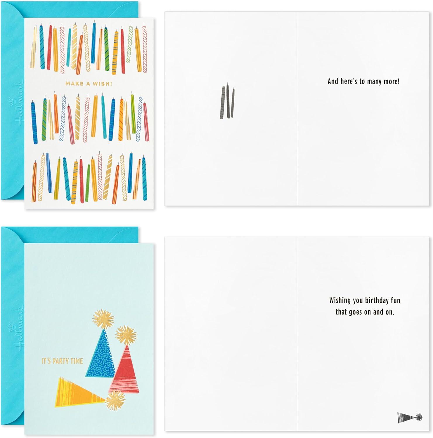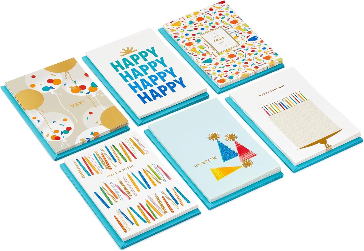 Assortment includes 36 cards (6 of each design) and 36 envelopes. Each design contains a unique birthday sentiment inside.