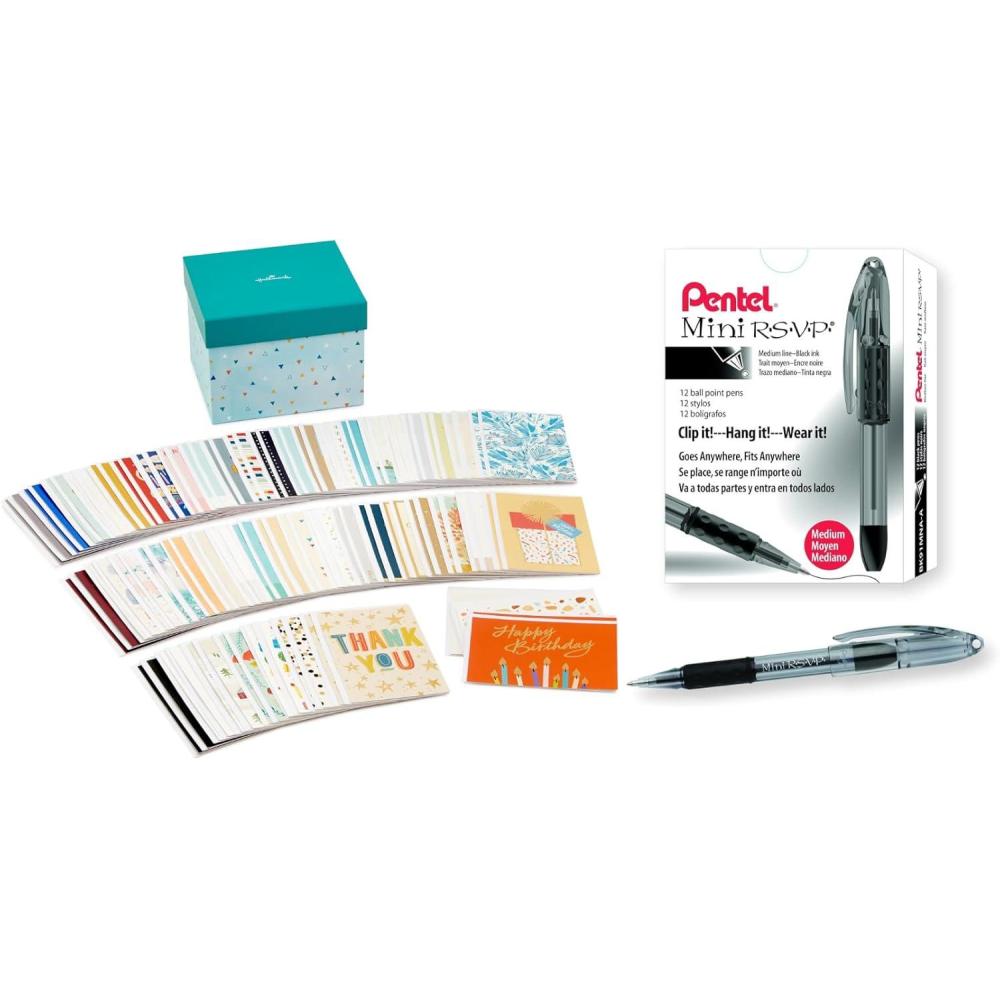 Pentel Mini R.S.V.P Stick Ballpoint Pens (Pack of 12) and Hallmark All Occasion Boxed Set of Greeting Cards (Pack of 100) for Birthday, Thank You, Sympathy, Wedding, Baby Showers