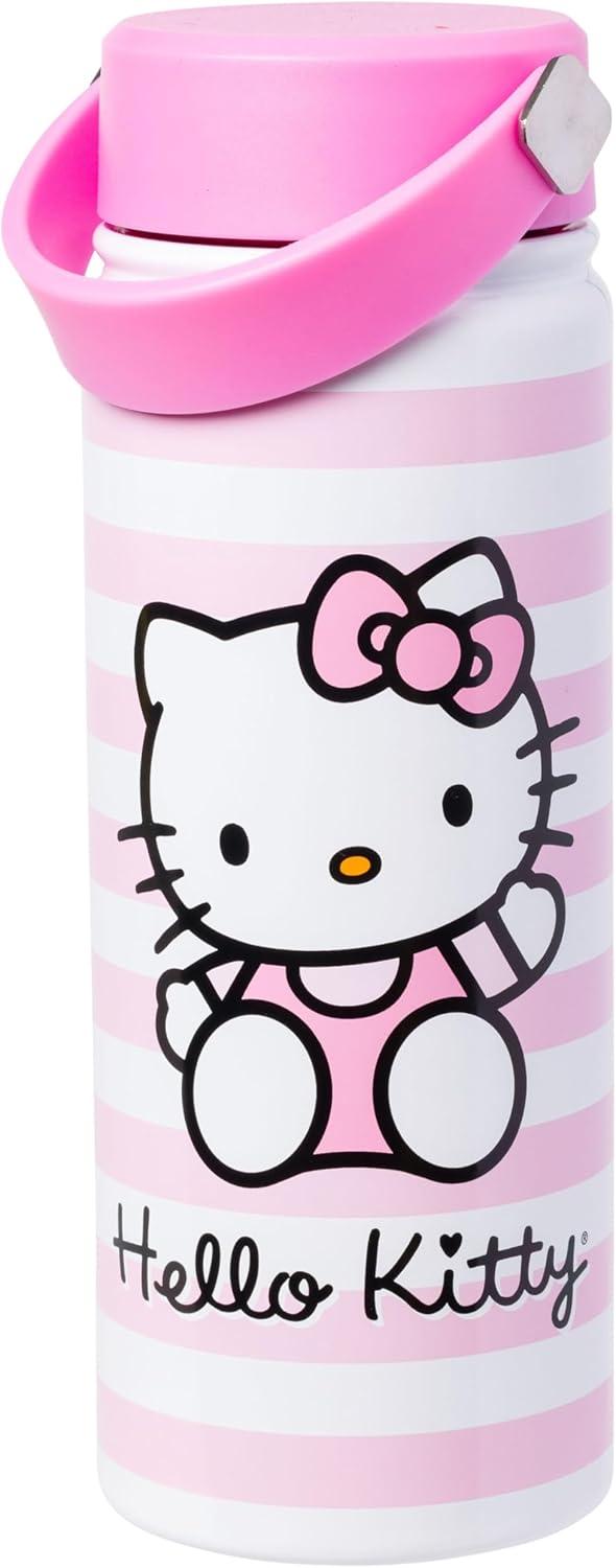 Silver Buffalo Rainbow Brite Stainless Steel Water Bottle with Swivel Handle, 20 Ounces(Hello Kitty)