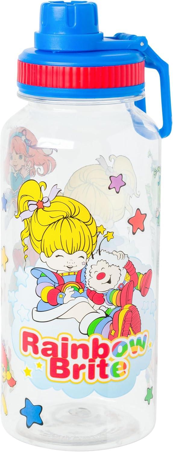 Silver Buffalo Rainbow Brite Twist Spout Plastic Bottle with Sticker Set Featuring Rainbow Brite and Twink, 32 Ounces